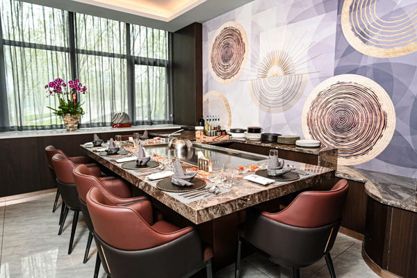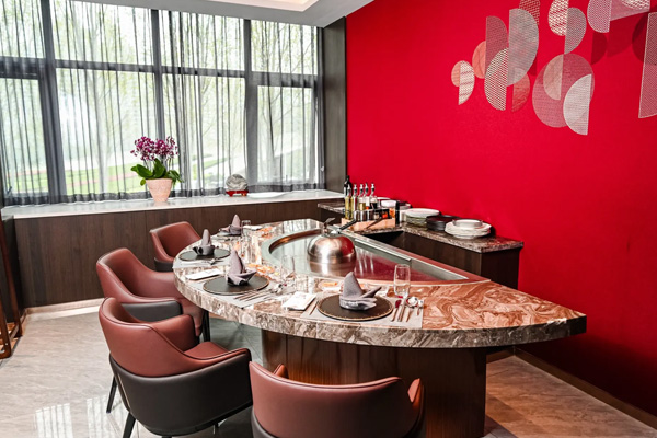 2臺半圓形鐵板燒設(shè)備,每個包間提供8個板前就餐位