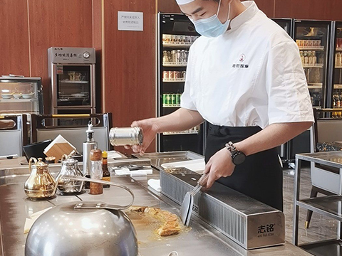 廚師服務(wù):廚師們不僅廚藝精湛,能夠熟練地在鐵板上烹飪出各種美味佳肴,還會(huì)與顧客進(jìn)行互動(dòng),介紹菜品的特色和烹飪方法,增加用餐的趣味性。